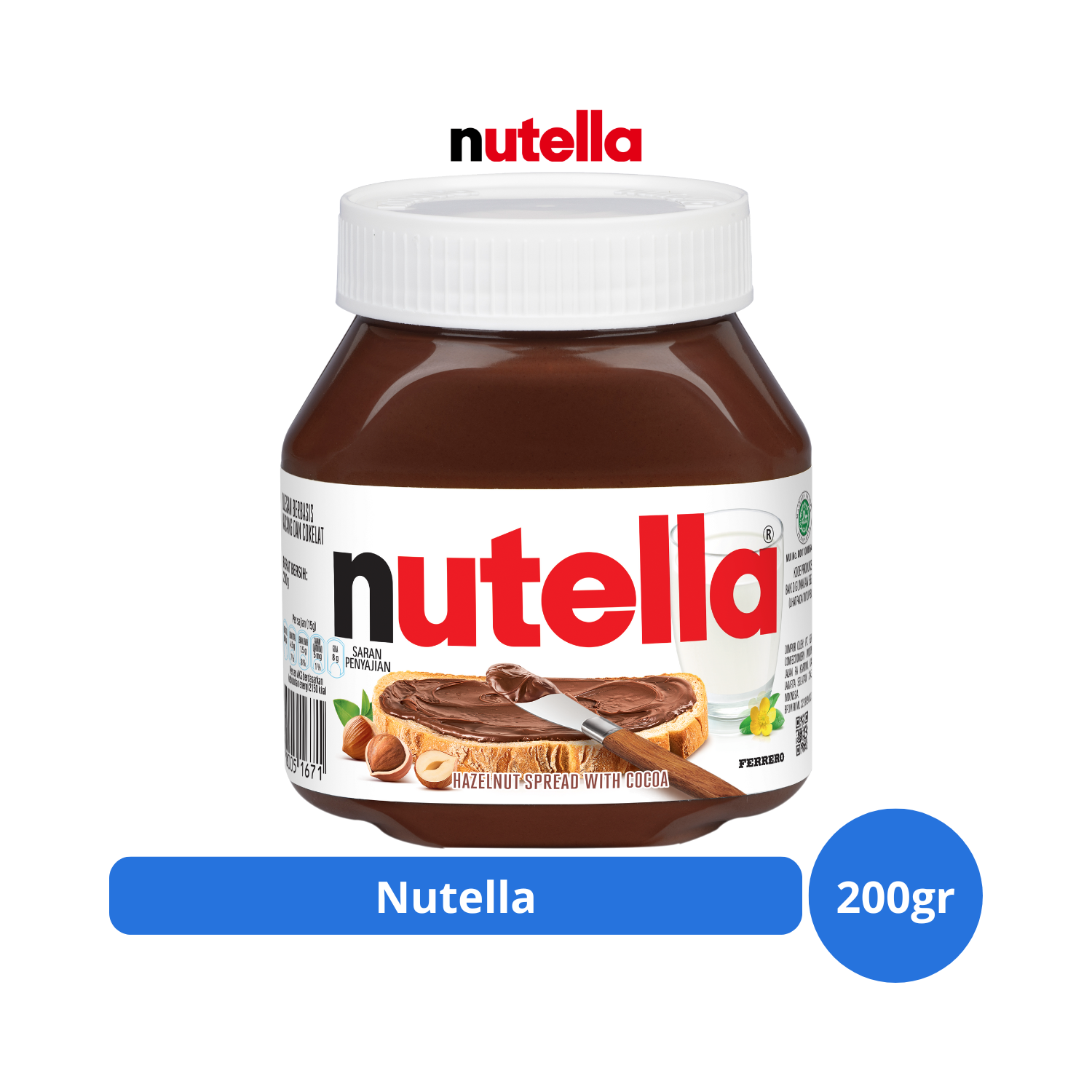 Nutella merupakan selai dengan rasa kacang dan cokelat yang lembut, enak, nikmat dan dikemas dengan praktis, sehingga mudah dibawa kemana-mana, serta dapat dinikmati kapan saja. Selai ini cocok untuk dijadikan toping kue atau pelengkap sarapan pagi Anda bersama keluarga.