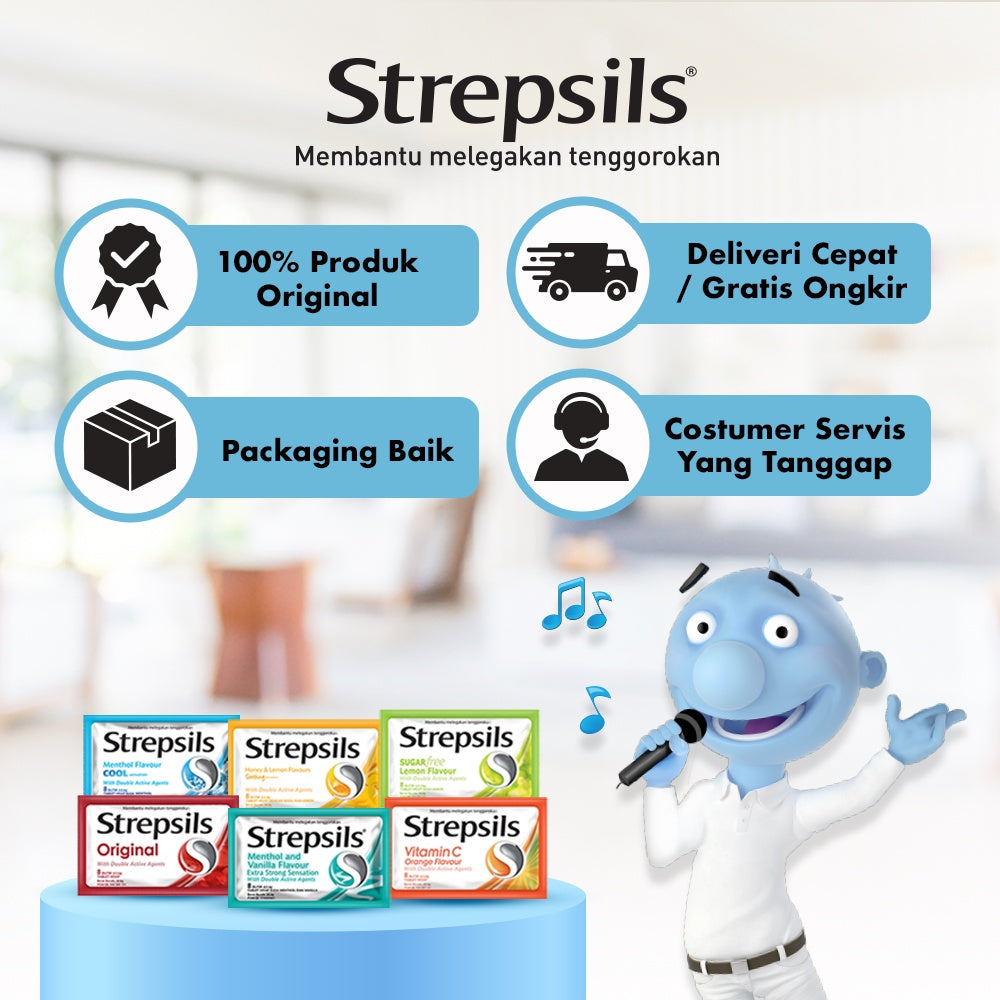 Strepsils merupakan satu-satunya permen pelega tenggorokan yang mengandung 2 zat aktif (double active agents) yaitu Amylmetacresol dan Dibenal, yang dapat membantu melegakan tenggorokan hingga 2 jam.