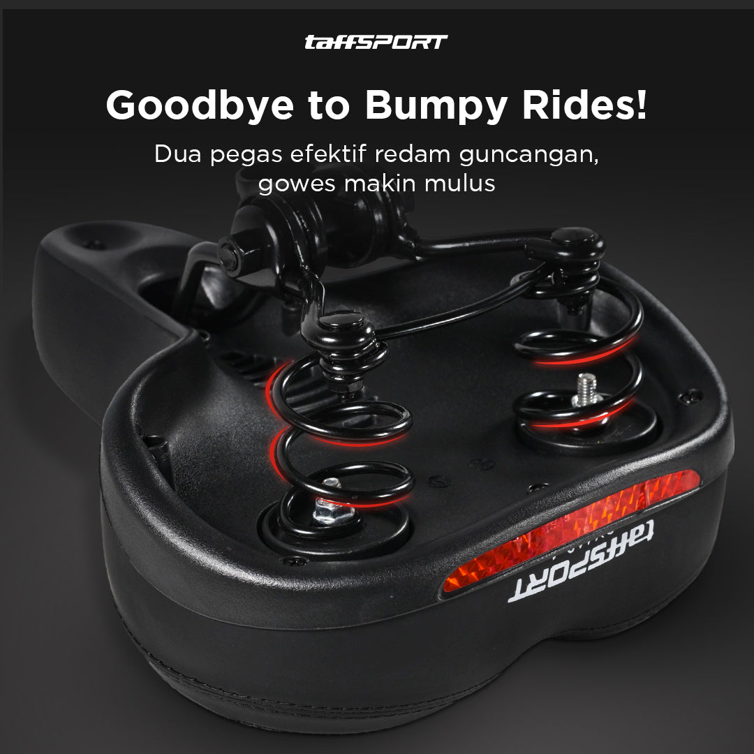 Pegas peredam ganda di bawah sadel meredam getaran dari jalan rusak atau turunan tajam, memberi kenyamanan maksimal. |