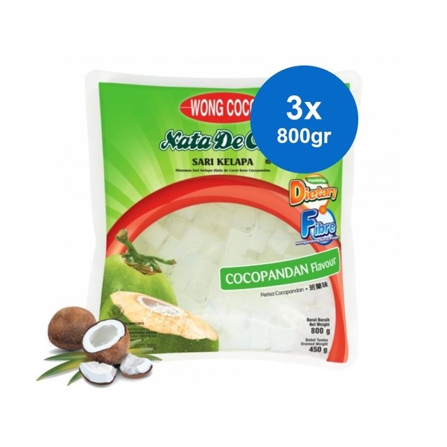 Wong Coco Nata de Coco Cubes Cocopandan 800gr x 3 pcs